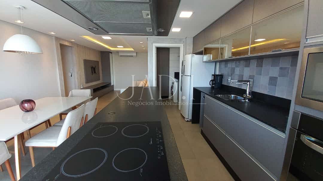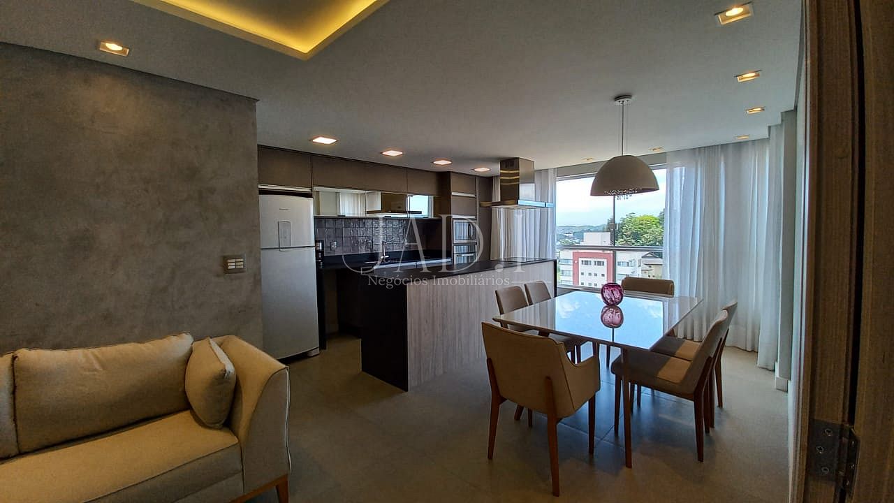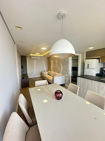 Lindíssimo apartamento, todo completinho, com mobília em todos os ambientes. Móveis planejados na sala, cozinha, quartos, banheiros e área de serviço. Com eletros, climatizado, em prédio com torre única, andar alto e  com vista para a Serra. Apartamento com despensa, em espaço reversível para lavado.  2 vagas de garagem (lado a lado, individuais).